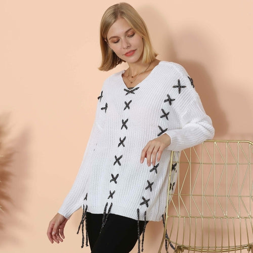 Jaycee Pearl Beaded Floral Drop Shoulder Sweater
